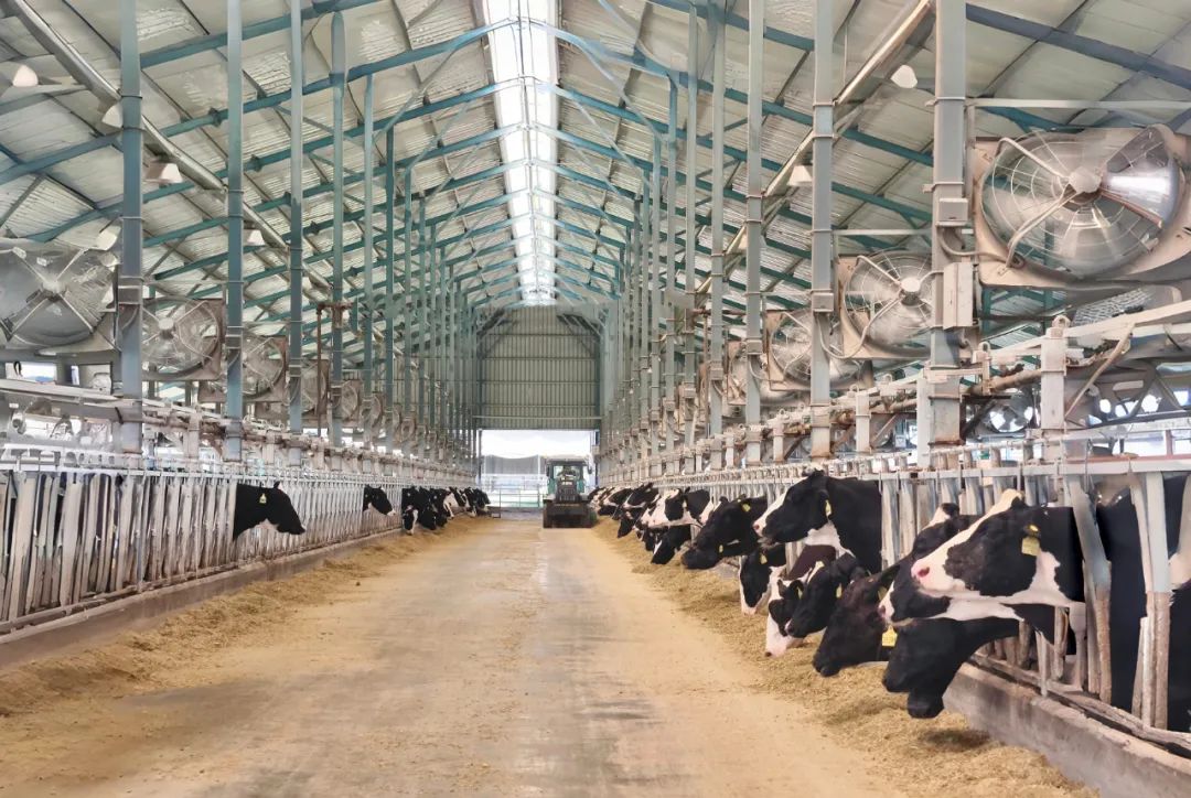 自動(dòng)感應(yīng)風(fēng)機(jī)、精準(zhǔn)噴淋裝置等智能設(shè)備隨環(huán)境自動(dòng)調(diào)節(jié),為奶牛打造舒適家園,確保每一滴牛奶源自健康奶牛。